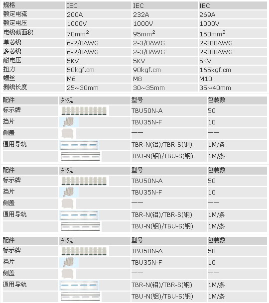 杭州立得tend 軌道式端子盤 TBU-70N、TBU-95N、TBU-150N