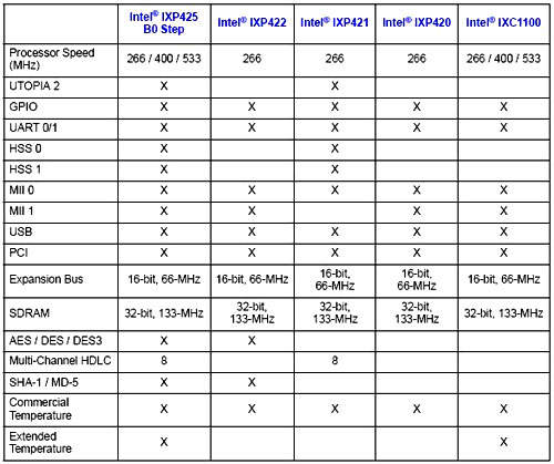 IXP42x系列芯片是基于Intel XScale架構(gòu)的嵌入式通訊專用處理器,內(nèi)置模塊豐富,具有USB、PCI、以太網(wǎng)、HSS、UART、UTOPIA、HPI等多種接口,集成度高,便于擴(kuò)展,適合在各種網(wǎng)絡(luò)通訊設(shè)備中充當(dāng)主處理器。