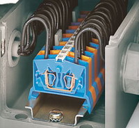 適用于TS 15與TS 35型導軌的小型接線端子有2線、4線型供選擇,可連接導線截面積0.08 mm² 至2.5 mm²的導線。具有籠式彈簧接線單元,操作簡便,安全可靠,是狹小空間的理想選擇。可使用T型標記牌或小型WSB標記系列進行標記。該系列產品主要應用于緊湊型接線盒、配電柜、操控以及監控設備中。