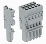 與基礎接線端子配套的即是1至15極、1線和2線的孔型連接器模塊,有直型和彎角型兩種。后者與雙層接線端子的組合可節省空間,增加結構緊密度。跨接器插孔使得在孔型連接器中也可進行跨接。這種功能特別是在使用雙線方式的供電回路中,在孔型連接器拔離的情況下保證電流的順利通過。