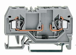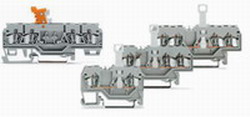 傳感器和執行器專用軌裝式接線端子具有籠式彈簧接線單元,接線快捷、方便,即使最纖細的傳感器電纜依然能被輕松連接。一個傳感器包括電源的正負極只使用一片端子即可,適用截面積從0.08 mm² 到2.5 mm² 的導線,端子厚度為5mm。配有無螺絲跨接器,跨接十分方便。使用香蕉插頭和WAGO公司提供的(209-170)測試插頭適配器可進行快速測試。LED指示器可以顯示狀態。一些接線端子允許斷開信號路徑或對24V或230V傳感器/執行器進行保險絲保護。