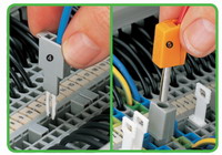 WAGO普通軌裝式接線端子采用籠式彈簧連接技術(CAGE CLAMP),適用于所有形式銅導線(多股及單股導線)的連接,且連接快速、可靠、抗震動、免維護。接線范圍從 0.08 mm² 到 16 mm²,可分為斜面進線和水平進線,操作簡單,接線質量不依賴于配線工的技術。使用WAGO提供的全絕緣插拔式跨接系列,如:相鄰跨接器,交錯跨接器,高低跨接器等,可實現任意兩片端子之間的跨接。