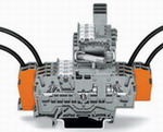 2002系列帶二極管和LED指示器的接線端子厚度僅為5.2mm,能夠實現極高的布線密度。WAGO提供單層、雙層和三層的接線端子。雙層、三層二極管接線端子專為用戶定制二極管電路(如燈泡測試電路及集中報警顯示電路)所設計。LED接線端子可以用于建立針對控制電路及工作電路的監控系統。梳狀跨接器的使用更加便于用戶定制電路的建立。