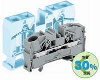 【外形小巧】TOPJOB®S 接線端子,適用于TS 35型導軌,因為使用了S型籠式彈簧接線單元,所以成為目前市場上最小巧的接線端子,可節省大約30%空間。小巧的設計可以使電器底板的面積縮小,接線盒和電器箱的體積縮小。