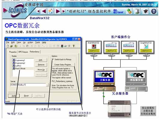 從任何基于OPC的愛康諾(ICONICS) 創世紀32(GENESIS32) 產品到任何運行微軟IE 瀏覽器的計算機,WEBHMI 提供OPC 和可視信息。