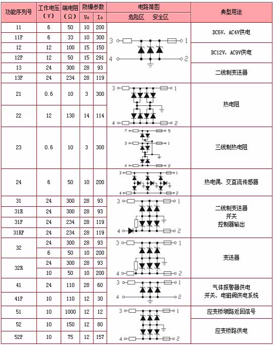 該系列有多種不同的型號規格,可與各種現場一次儀表如變送器數字通訊的智能變送器、4-20mA模擬信號的普通變送器、國產DDZ-Ⅲ型變送器)、電氣轉換器、電氣閥門定位器、各類熱電偶、開關(觸點及模擬開關)、流量儀表(渦輪、腰輪、刮板、旋渦等流量變送器)、電磁閥及各種特殊儀表組成本質安全防爆系統,用于現代化工業的自動化過程控制,廣泛地應用在石油、化工、醫藥、船舶等領域。