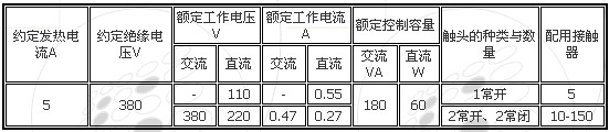 接觸器額定控制電源(Us)的標(biāo)準(zhǔn)值為:交流(50Hz):36、110、127、220、380V直流:48、110、220V輔助電路的觸頭種類、數(shù)量及基本參數(shù)參婁(交流50Hz)見表1
