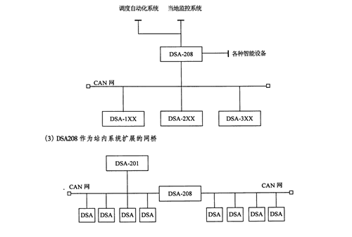 DSA208組態型監控裝置不僅具有測控功能,同時還具有豐富的通信接口和信息處理功能,因此其使用方式較為靈活,主要有下述三種典型應用。