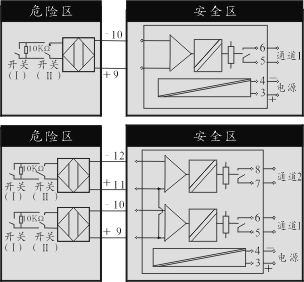 危險區(qū)輸入信號:開關,接近開關供電電壓>8V(開路電壓)