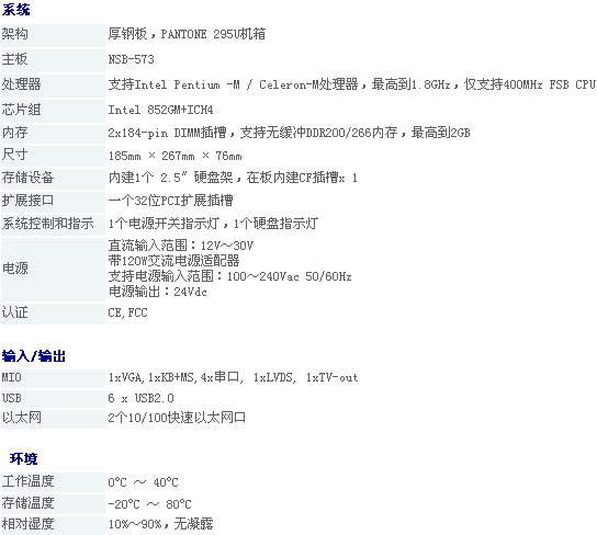 - 支持Intel Pentium M & Celeron M 處理器,可達1.8GH