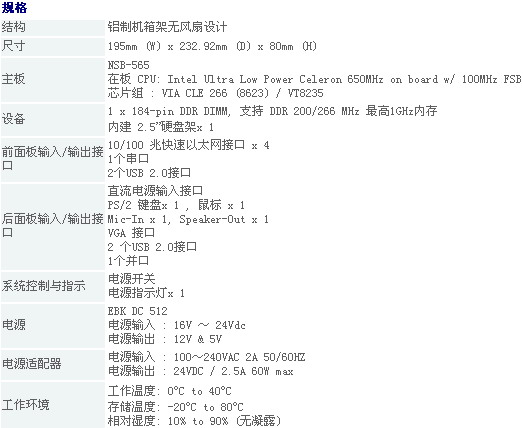 - 板載Ultra Low Voltage Intel® Celeron® 650MHz 處理器
