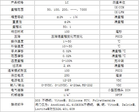 LC系列流量控制器采用了一個比例閥,它與流量計部分相連,從而形成一個閉環流量控制系統。測量是在流量計的層狀區域進行的,并且一體化的PID控制器按照流量設定點定位閥門。這些堅固的、閉環控制器可以接收一個可選的模擬或數字控制設置點信號,設置點信號或者來自一臺外部的設備,或者來自一臺Alicat本地設定點模塊(LSPM)。控制器還能接受RS-232,0-10Vdc,或4-20mA控制輸入信號,這取決于用戶的選擇愛好。與設定點電壓無關的是,控制器能配置為單路或雙路信號輸出,它們可以是同樣的或不同的電壓或參數,例如溫度和流量。這是可能的,因為我們的層狀流量計設計綜合了固態的差壓、絕壓和溫度傳感器并在固有的線性系統中計算流量。結果是一個具有多路輸出的、快速響應的線性流量計。所有這些參數同時顯示在動態顯示屏上,顯示屏包括操作按鍵。液體控制器量程從每分鐘50毫升滿量程到每分鐘500毫升滿量程。更高的量程范圍請參見渦街控制器。
