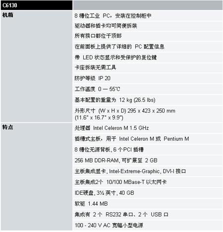 工業 PC C6130 適合安裝在控制柜中。該款 PC 裝備了一個插槽式主板和一個無源背板。Beckhoff 控制面板和 C6130 配套使用是最佳組合。若裝有運行在 Windows NT、Windows 2000 或 Windows XP 下的 TwinCAT 等自動化軟件,C6130 則成為機械制造和工廠工程應用的理想選擇。