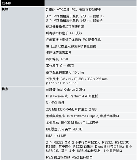 工業 PC C6140 適合安裝在控制柜中。該款 PC 裝配有最高性能等級、符合 ATX 標準的組件。Beckhoff 控制面板和 C6140 配套使用是最佳組合。若裝有運行在 Windows NT、Windows 2000 或 Windows XP 下的 TwinCAT 等自動化軟件,C6140 則成為機械制造和工廠工程應用的理想選擇。
