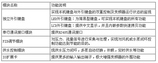 二、模塊化結構JK系列變頻器,遵循模塊化設計理念,為客戶營造個性化的使用選擇;根據不同的行業應用的特點,設計不同的多功能擴展卡,將行業應用的解決方案內置于擴展卡中,用戶僅需要一塊擴展卡,便能獲得行業專用變頻器的功能,真正做到低成本實現用戶定制的系統。