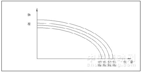 由于潛油電泵的轉(zhuǎn)速與供電頻率相關(guān),以上特性可以用轉(zhuǎn)速或頻率表示,即:Q1=Q(N1/N)=Q(f1/f);