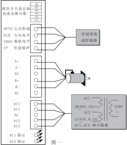 電 機 接 口: 對于二相四線電機,可直接與驅動器相連(如圖二A)。
