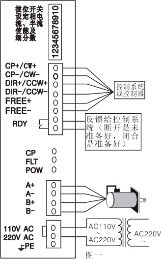電 機 接 口: 對于二相四線電機,可直接與驅動器相連(如圖二A)。