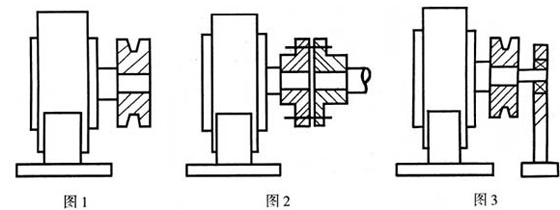 5、磁粉制動器,不支持使用徑向承受主傳動力的安裝方式。如懸臂安裝皮帶輪、齒輪等(見圖1)。支持使用連軸節(jié)式安裝方式(見圖2)。如確需安裝齒輪及皮帶輪傳動建議軸端增加支承(見圖3)。