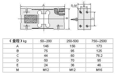 量程范圍(kg) : 50、100、200、250、300、500、750、1000、2000、2500