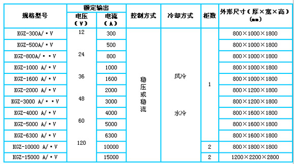 2.輸出電壓:(12V、24V、36V、48V、60V、120V)DC 輸出電流:0—15000A