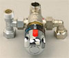 恒溫混水閥是我公司專為熱水系統研制的配套產品,廣泛應用于電熱水器,太陽能熱水器及集中供熱水系統。并可配套應用于電熱水器和太陽能熱水器,用戶可以根據需要自行調節冷熱水混水溫度,所需溫度可以迅速達到并且穩定下來,保證出水溫度恒定,且不受水溫、流量、水壓變化的影響,解決洗浴中心水溫忽冷忽熱的問題,當冷水中斷時,混水閥可以在幾秒鐘之內自動關閉熱水,起到安全保護作用。