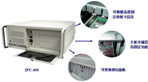 IPC-400 是 4U 高 14 槽機架安裝工業電腦機箱,專為任務關鍵應用而設計。機箱包括一個通用 14 槽無源底板(PCI/ISA槽位可選)、帶 PFC(功率因數補償)高效 300 W ATX電源和易于維護的前置冷卻風扇(置易拆洗防塵濾網),帶一個高 CFM 風扇的先進冷卻系統能夠提供充足的氣流來冷卻系統的主要部件。機箱前開門的系統狀態 LED 指示燈可顯示電源、硬盤和系統電壓的運行情況。前端接線的 USB 和 PS/2 鍵盤 I/O 接口可以連接各種外部設備,以便進行數據傳輸、備份和輸入,符合用戶在各種場合的使用。靈活的機械設計支持單 PS/2 電源或冗余電源(通過更換電源托架),適應寬溫(-20℃到60℃)的工作環境。創新的加固型全鋼結構和可調整高度固定的板卡壓條設計,以及特殊的主板末端壓條固定功能,大大提升了傳統工控機的抗震性和可靠性。IPC-400除可選多種工業長卡配置外,也可選多種工業母板結構(更換后面板即可),以滿足客戶不同配置要求,更加方便客戶升級更新,實現“一機兩用”的功能。