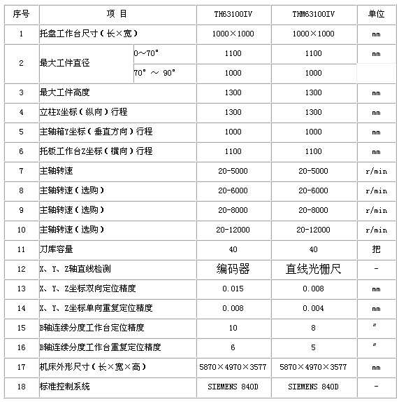 2.1 TH63100IV是普通級精度的臥式五軸加工中心,THM63100IV則是精密級精度的臥式五軸加工中心。其主要區別在于THM63100IV配備直線光柵和圓光柵,可進行全閉環控制。而TH63100IV采用伺服電機內置編碼器檢測,只能進行半閉環控制。