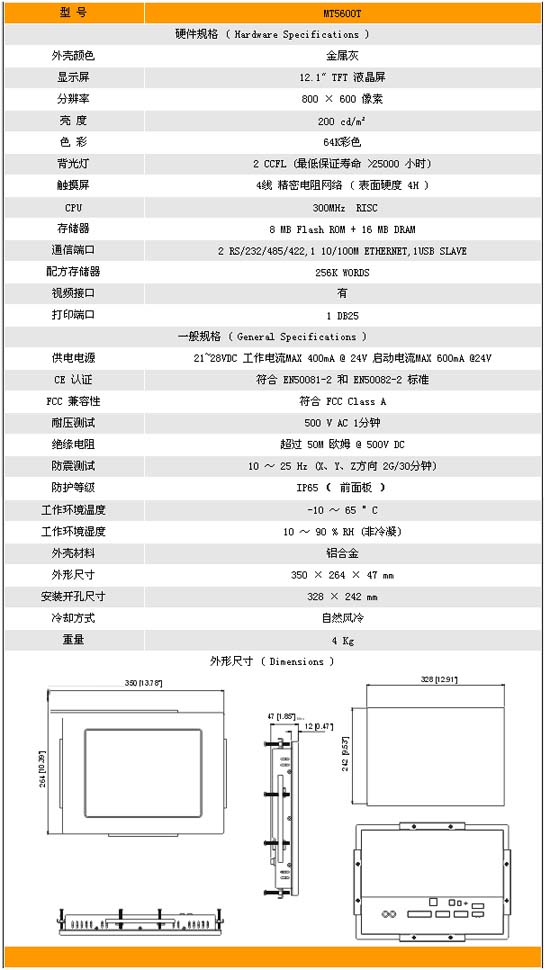 背光燈 2 CCFL (最低保證壽命 >25000 小時)