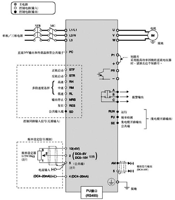 E500系列變頻器端子接線圖: