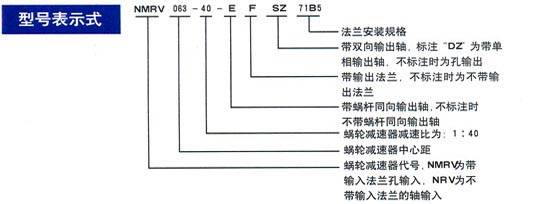 NMRV系列精工蝸輪減速電動機型號說明: