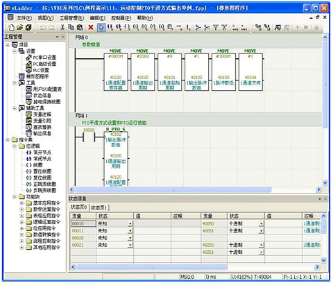 深圳市德天奧科技有限公司隆重推出全新的V80系列可編程控制器編程軟件——VLadder(5.11)。VLadder(5.11)在原有基礎上做出了幾項重大改進和完善:一、操作界面更加人性化;二、軟件功能更強大,補充了許多新的指令;三、通過優化軟件結構,運行更穩定可靠;四、同步推出與之配套的說明手冊,并在技術方面提供全面支持。更多詳細內容,請密切關注德維森網站或來電咨詢。 功能強大的指令庫: 基本應用指令 數學運算指令 表格數據處理指令 邏輯運算指令 位處理指令 數據格式轉換指令 流程控制指令 其它應用指令 人性化的軟件操作界面: