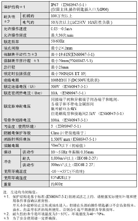 ·通過強制斷開動作構造(僅限NC接點側),防護蓋開門時開關的接點分離。