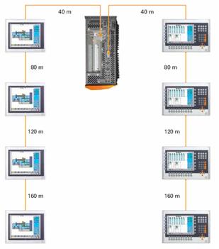 貝加萊設計的SDL(智能顯示接口)將所有的通信信號包括在一根電纜上,其中有顯示信號線、觸摸操作信號線、Automation Panel面板上USB接口的信號線以及面板的維護數據的傳送,最長距離可達40米,而且一個SDL接口可連接顯示相同畫面的4個Automation Panel,距離長達160米,通過軟件互鎖各自的觸摸或按鍵的輸入,防止現場的誤操作。除了本身集成的一個SDL接口外,還可以在APC810上選加一個SDL接口,并且每條線可以獨立顯示不同的內容。