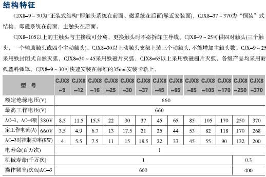 CJX8系列交流接觸器適用于交流50Hz(60Hz),額定工作電壓至660V,額定工作電流至370A的電力線路中,供遠(yuǎn)距離接通和分?jǐn)嚯娐罚l繁地起動和控制交流電動機(jī)之用,常與JRS8系列熱繼電器組成電磁起動器,此時具有過載及斷相保護(hù)作用。