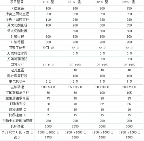 ◆數控車床主要技術參數