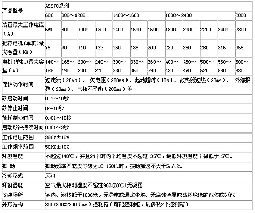 三、ASS70系列全數字軟啟動主要技術數據:(表1)