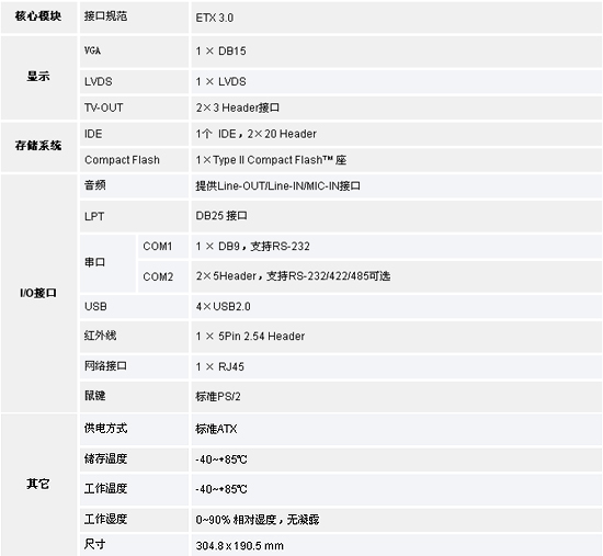 ◆采用ETX標準CPU模塊接口,提供3路PCI總線和3路ISA總線擴展