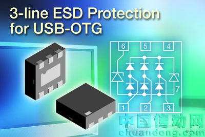 Vishay 推出的新型 USB-OTG 總線端口保護陣列超薄器件