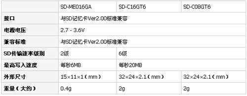 所有新款的SD記憶卡均符合SD記憶卡Ver2.00標準的要求。SDHC卡支持6級超快讀寫速度,寫入速度最快可達每秒20MB,可為連續拍攝靜止圖像和攝錄視頻圖像提供必要的性能水平。市場對同時具備高容量和高速數據讀寫功能的記憶卡有著強烈的需求,這些新款記憶卡正好可以滿足這些需求。新型microSDHC可配合轉接器使用,便可插入SDHC的卡槽。