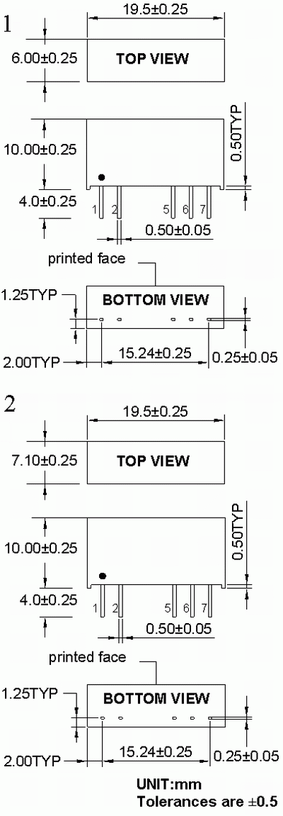 FEATURES: ●7PIN SIP Package ●3000VDC/3000VAC/6000VDC/ Isolation ●Unregulated Output Types ●Recognized By UL 60950-1 ●Operating Temperature:-40℃ TO +85℃