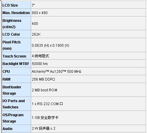 * 7”寬屏WVGA TFT LCD配有電阻觸摸屏