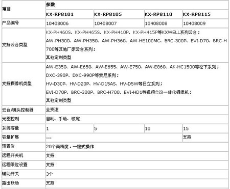 KX-RP81XX系列可以控制1路、5路、10路、15路廣播級云臺及攝像機,同時1路控制可以直接控制攝像機。