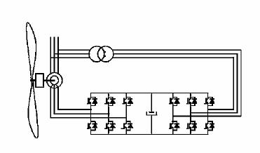 為雙饋風(fēng)力發(fā)電用型,雙饋發(fā)電機在結(jié)構(gòu)上與繞線式異步電機相似,即定子、轉(zhuǎn)子均為三相對稱繞組,轉(zhuǎn)子繞組電流由滑環(huán)導(dǎo)入,發(fā)電機的定子接入電網(wǎng);而電網(wǎng)通過四象限交直交變流器向發(fā)電機的轉(zhuǎn)子供電,提供交流勵磁電流。通過變流器的功率僅為電機的轉(zhuǎn)差功率,功率變流器將轉(zhuǎn)差功率回饋到轉(zhuǎn)子或者電網(wǎng),雙饋電機的交直交功率變流器由于只通過轉(zhuǎn)差功率,其容量僅為電機額定容量的1/3~1/2,因此大大降低了并網(wǎng)變流器的造價,網(wǎng)側(cè)和直流側(cè)的濾波電感、支撐電容都相應(yīng)縮小,電磁干擾也大大降低,也可方便地實現(xiàn)無功功率控制。