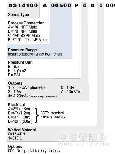 美國傳感器技術(shù)公司推出的AST4100是一種細(xì)小型而低成本的不銹鋼壓力傳感器。AST 4100兼容的液壓和氣壓范圍可由0至10000 P S I , 應(yīng)用范圍十分廣闊。A S T 4 1 0 0 提供 10mV/V輸出或其他放大信號。而AST獨(dú)有的 Krystal Bond™技術(shù)令傳感器很多元化。