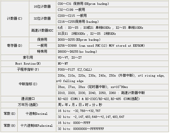● 程序容量8000STEPS,內建EEPROM,無需電池