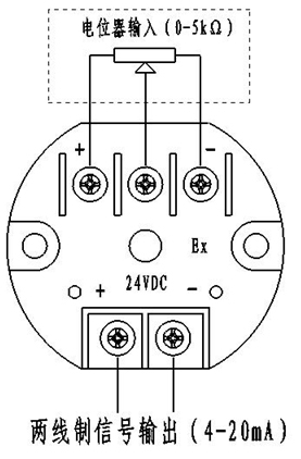 本模塊用于將三端電位器中心抽頭的變化轉化為電流信號變送遠傳。內部采用工業級專用集成電路為核心器件,具有精度高、穩定性好等特點。